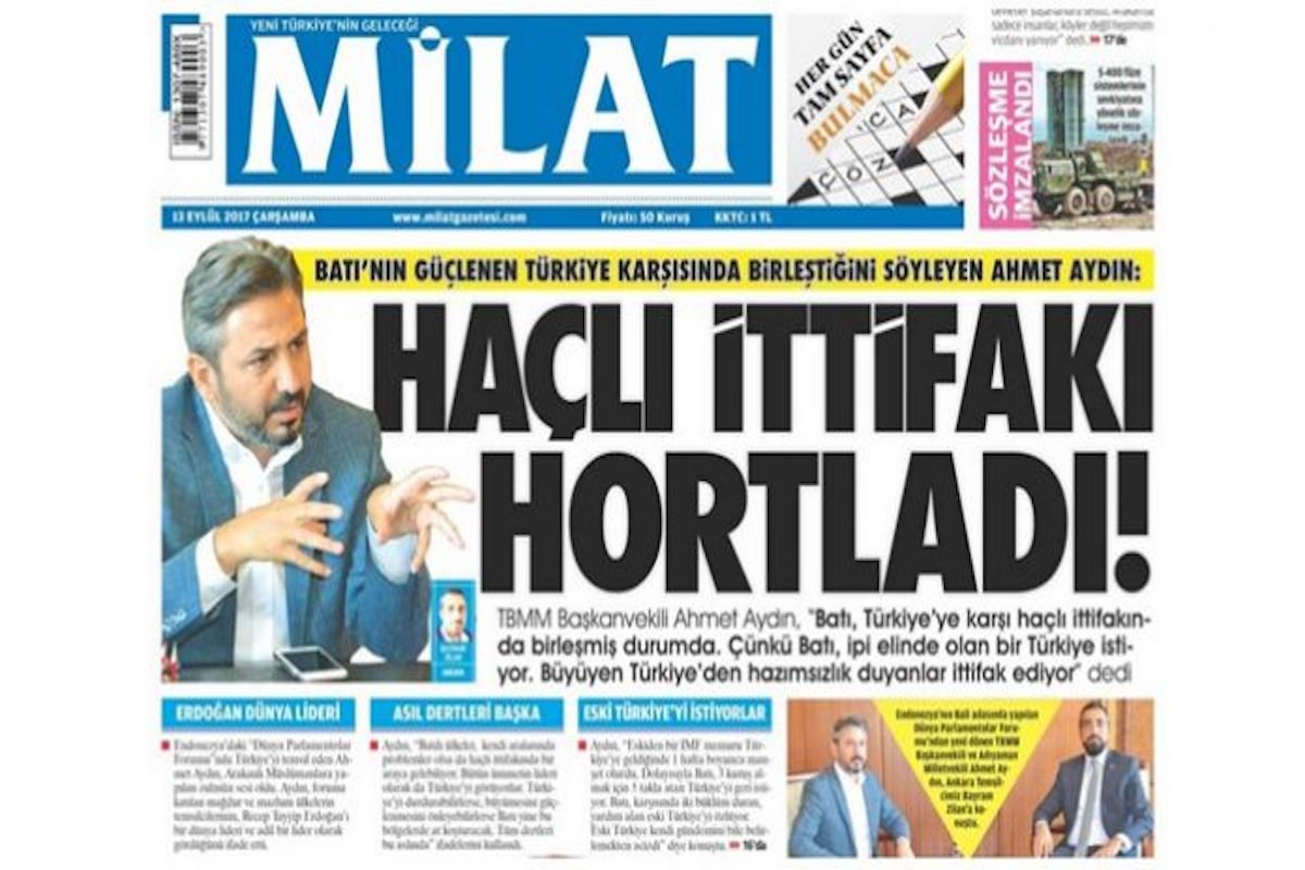 Turkish Deputy Parliament Speaker and Adıyaman deputy Ahmet Aydın has claimed that Western countries have joined forces to form a “crusader alliance” against Turkey in order to control it.