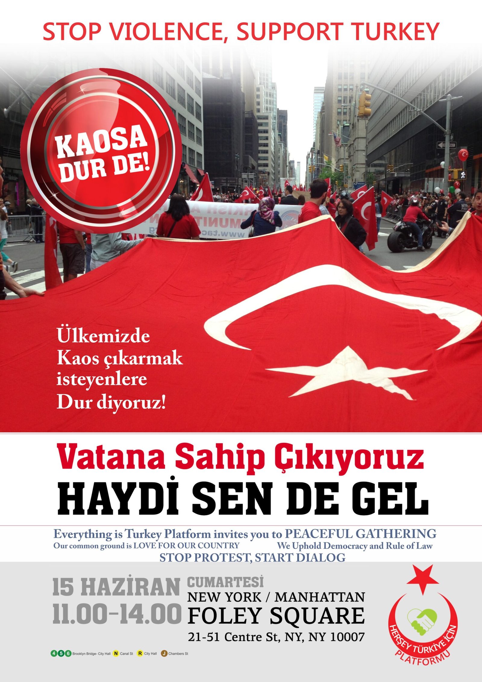 The demonstration Danışmaz was referring to was held in New York City on June 15, 2013 in support of Erdoğan at a time when Turkey was rocked by what is known as Gezi Park protests, which began due to government plans to build over Gezi Park, one of the few green spaces left in İstanbul, and spread across the country.