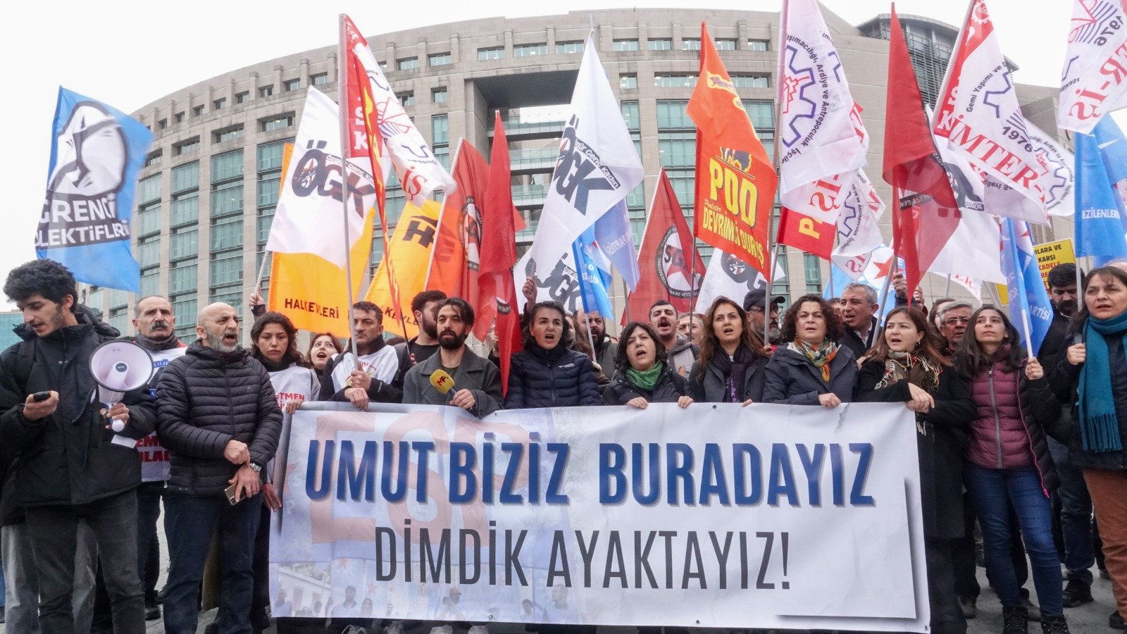 Representatives from several political parties gathered outside the İstanbul Courthouse on Tuesday following a call by the ESP. Demonstrators criticized the detentions in what they described as political genocide and demanded the immediate release of those detained.