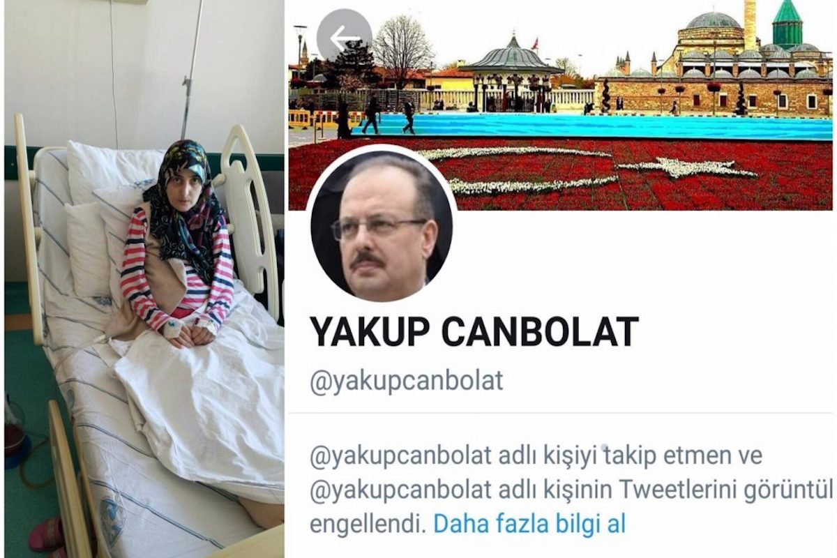Yakup Canbolat, the governor of Turkey’s central province of Konya, has blocked a Twitter account that seeks help for a teacher who was hit by, apart from her already-existing medical problems, the government’s massive post-coup crackdown.