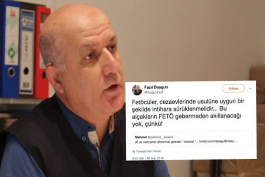 Pro-government Turkish journalist and writer Fazıl Duygun has called on authorities to force people jailed over alleged links to the Gülen movement to commit suicide.