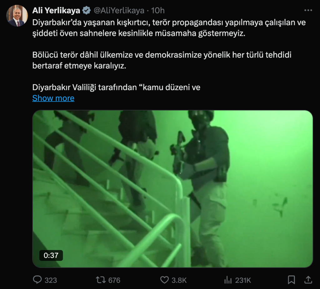 Yerlikaya also added that legal proceedings have been initiated against 47 social media account holders who shared posts related to the demonstration in Diyarbakır that are allegedly in support of a terrorist organization, namely the PKK.